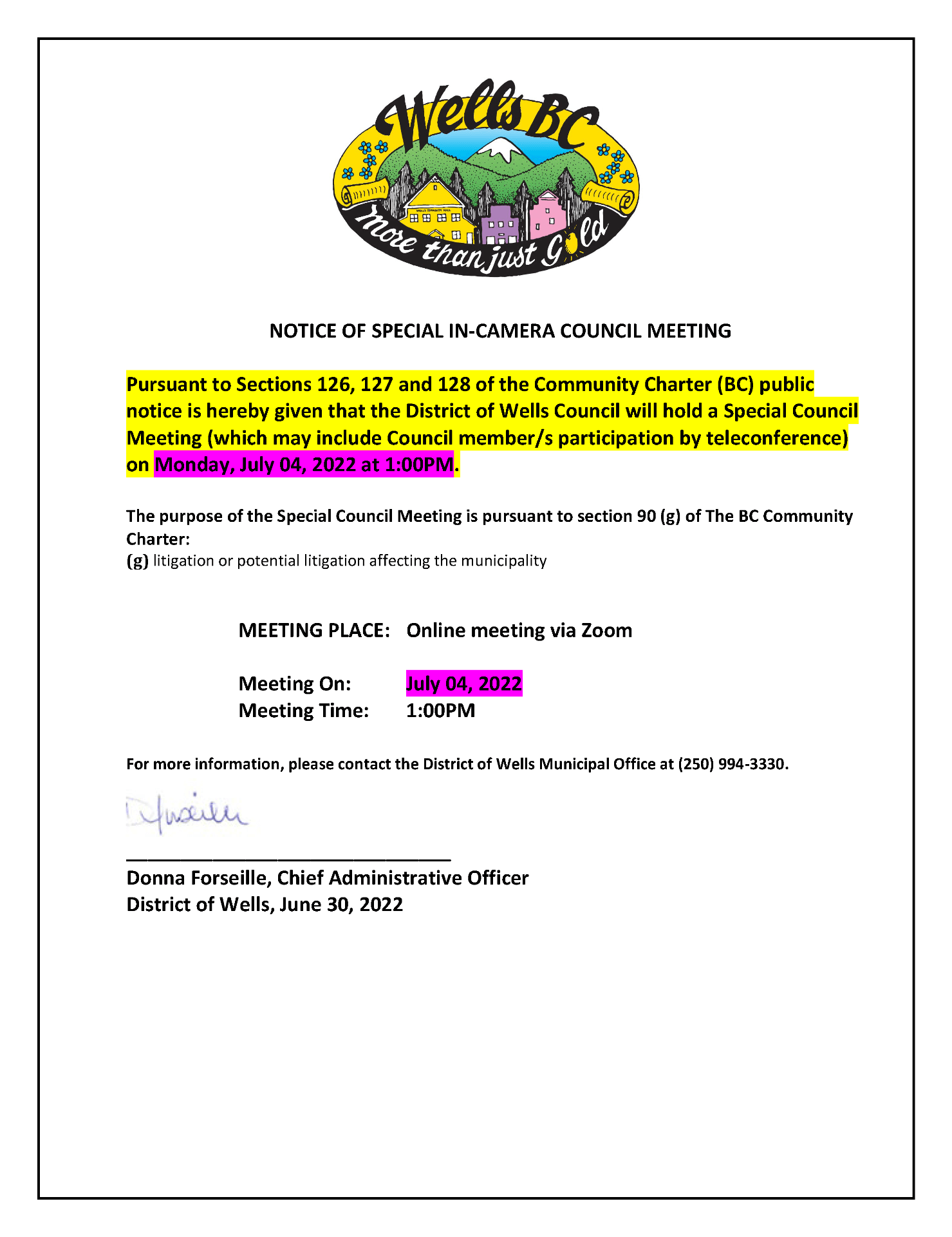 Cariboo-Chilcotin Local Government Meetings - Week of July 4-8, 2022